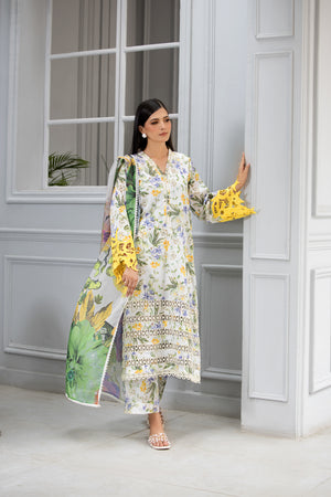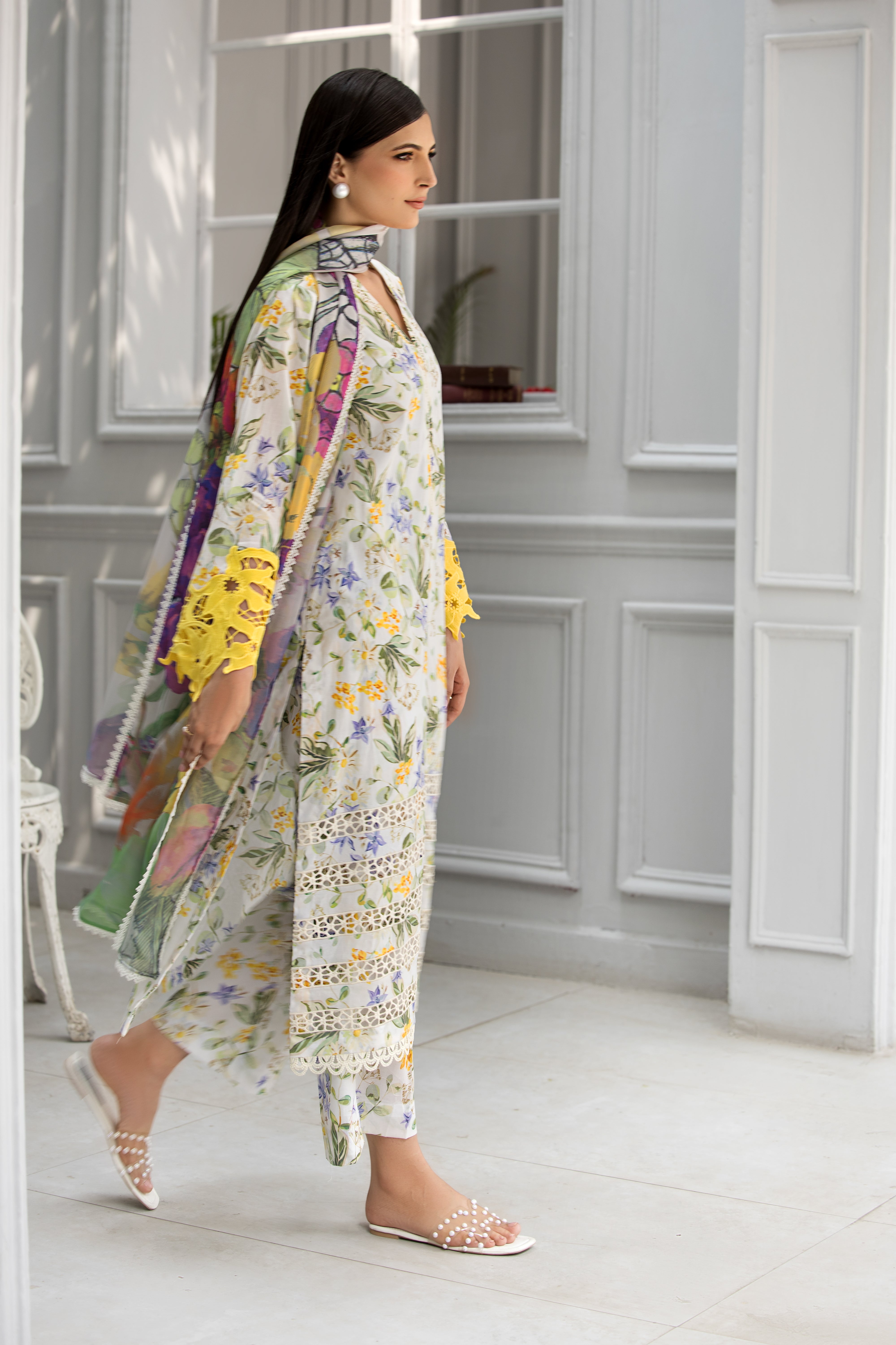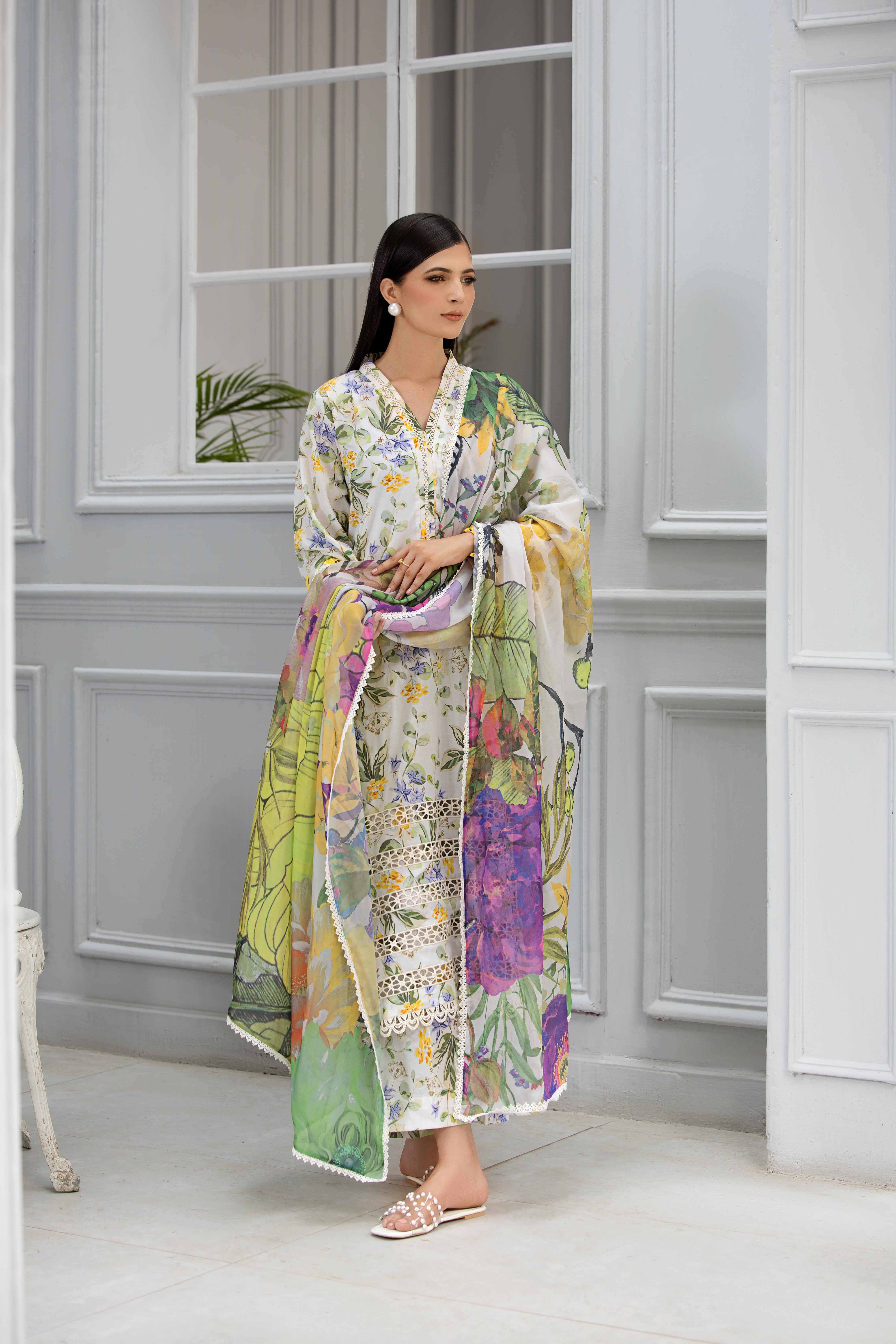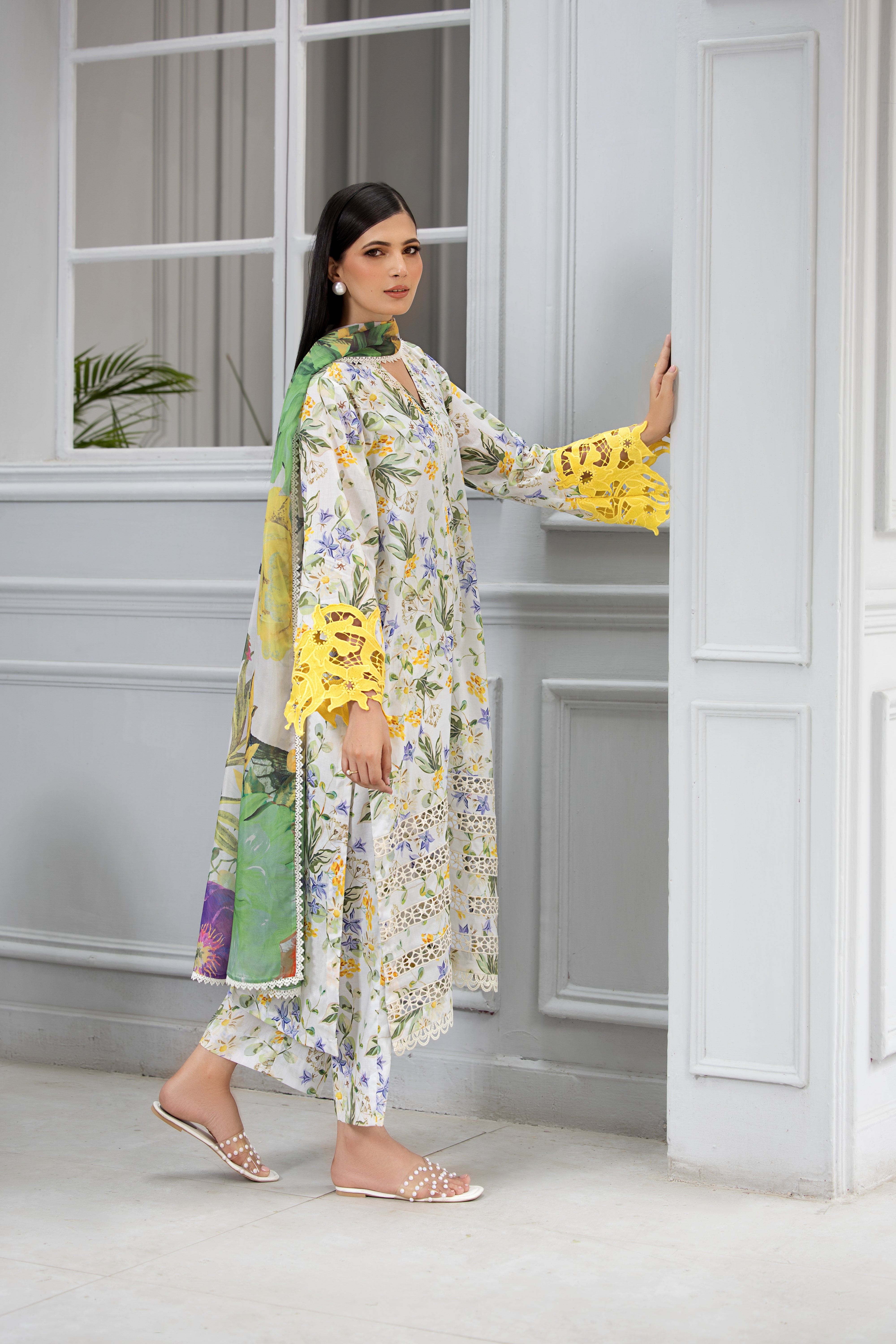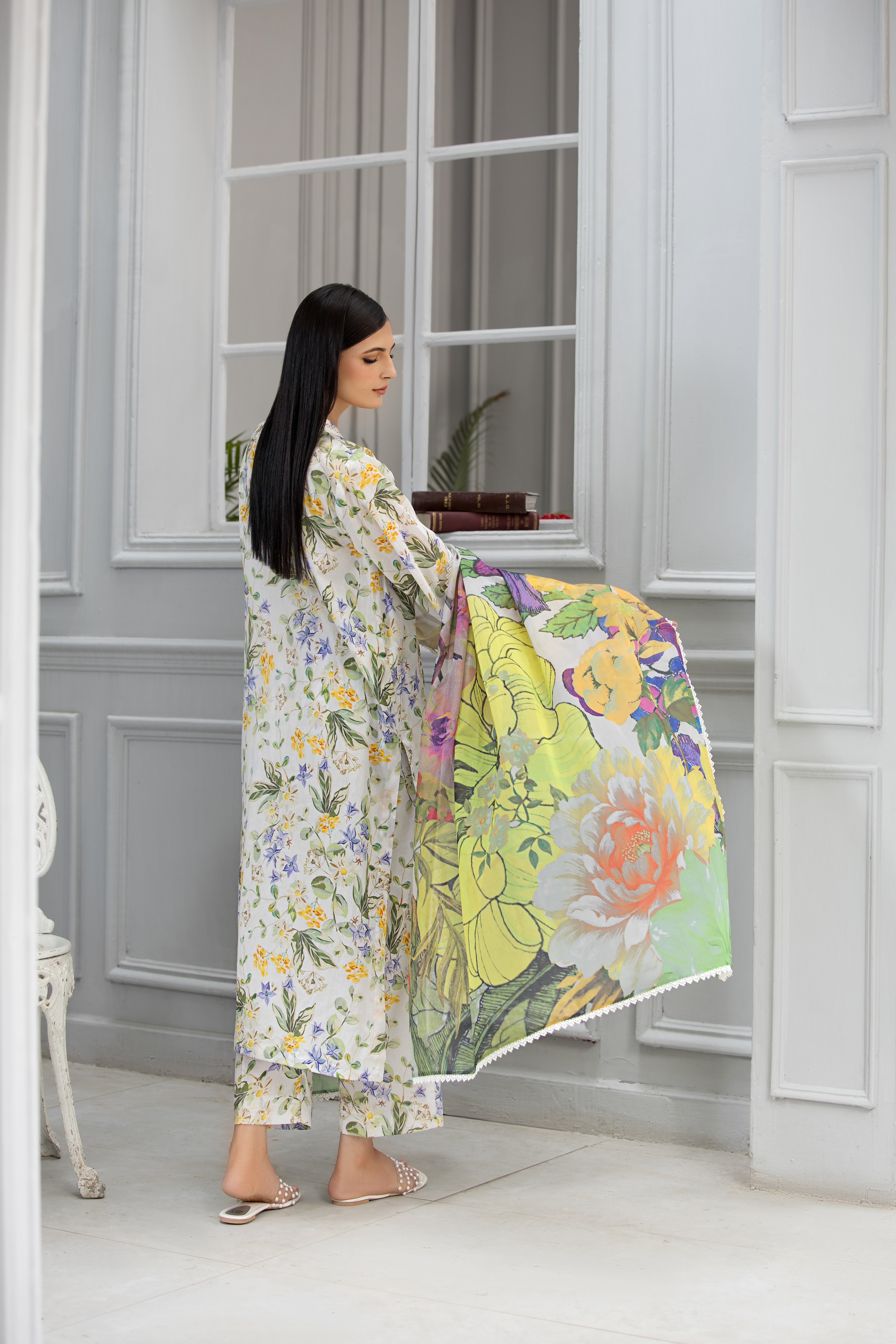 Step into elegance with جھومرو, a stunning blend of timeless charm and modern design. Crafted from premium quality lawn, this three-piece ensemble features a beautiful floral print enhanced with delicate embroidery, adding depth and sophistication to your look.