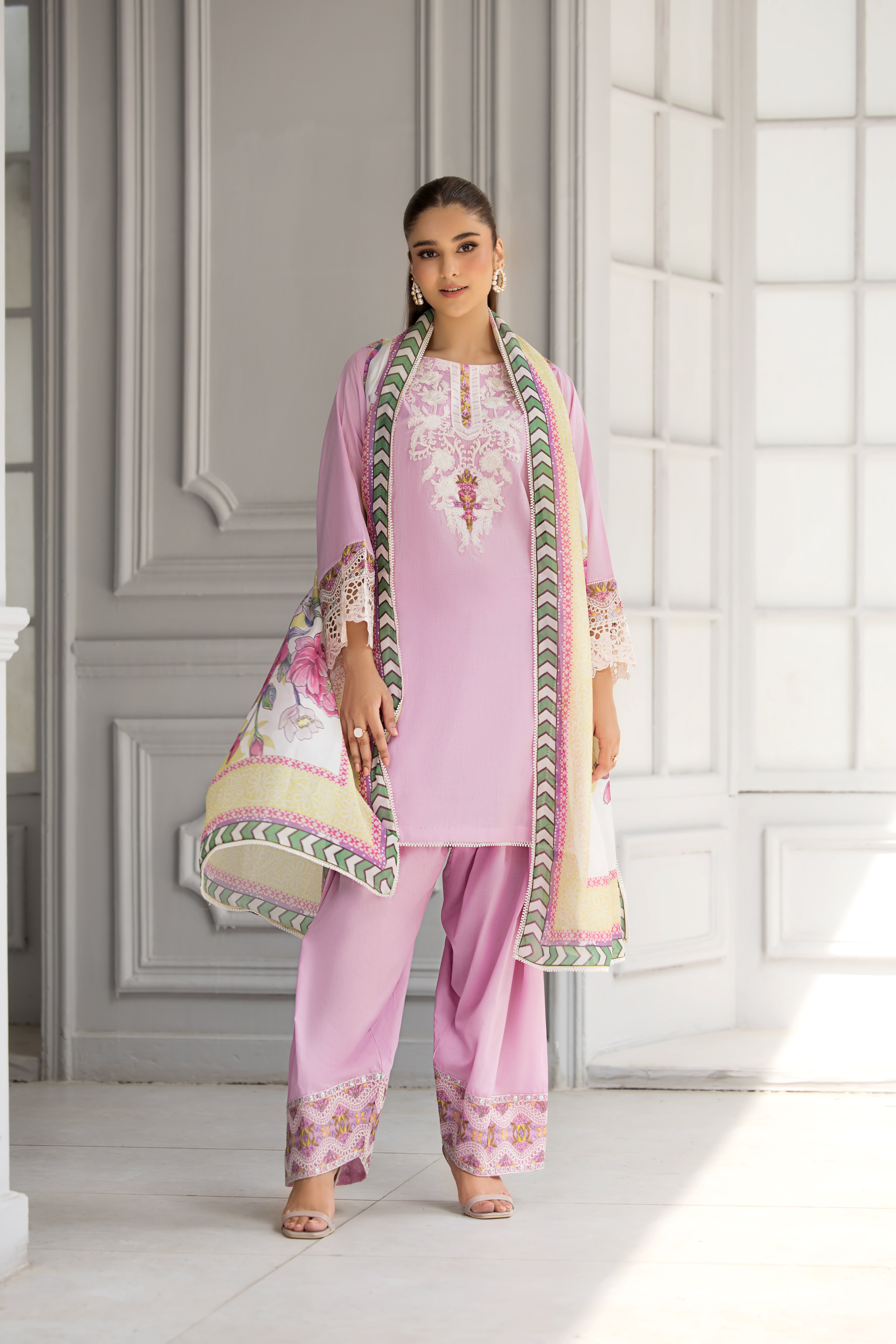 ✨ Shirt: Premium lawn fabric adorned with intricate embroidery that adds a touch of sophistication to every detail.