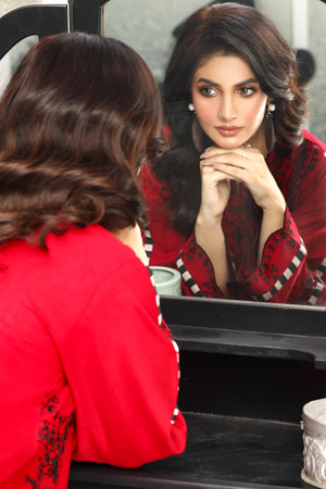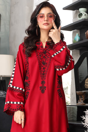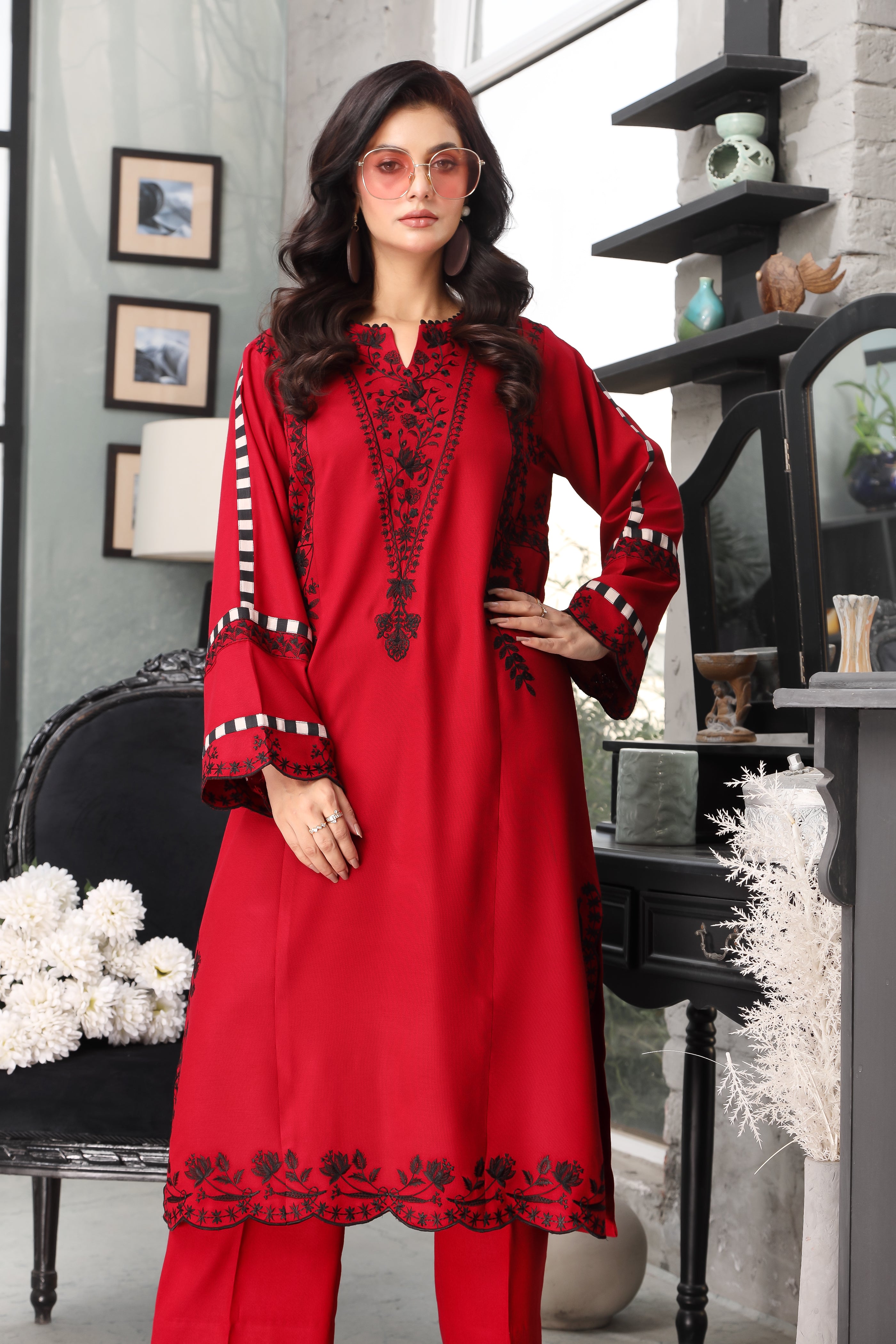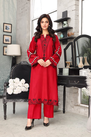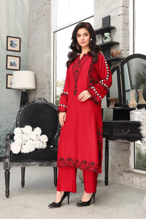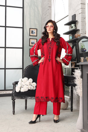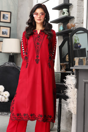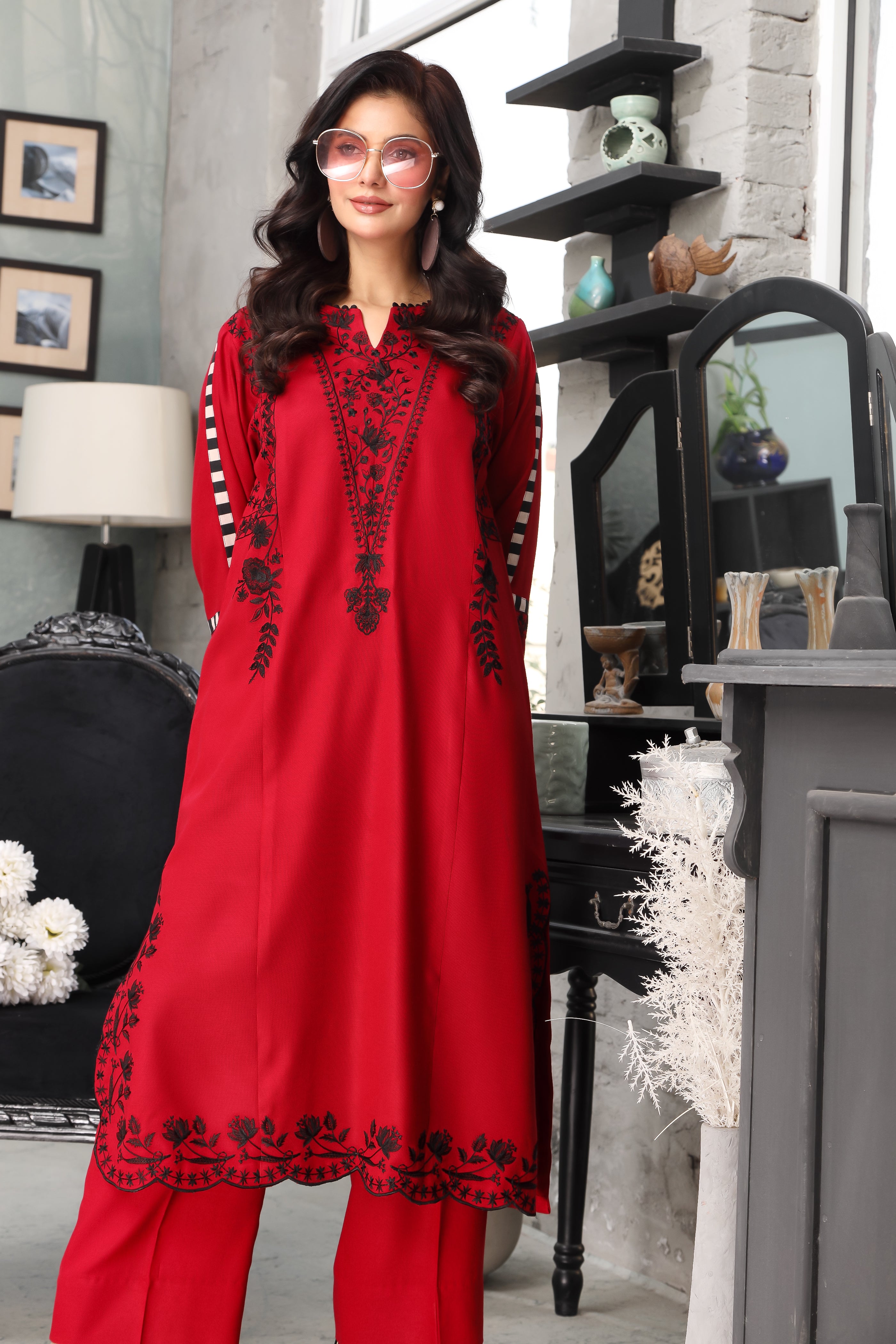 This stylish two-piece stitched suit features an embroidered panel shirt that exudes elegance and sophistication. The shirt is complemented by intricately embroidery and print detailing on the sleeves, adding a touch of artistic flair. The ensemble is paired with comfortable culotte trousers, creating a chic silhouette that is both modern and versatile.