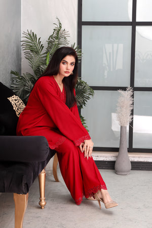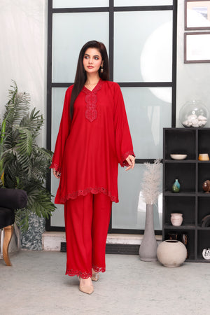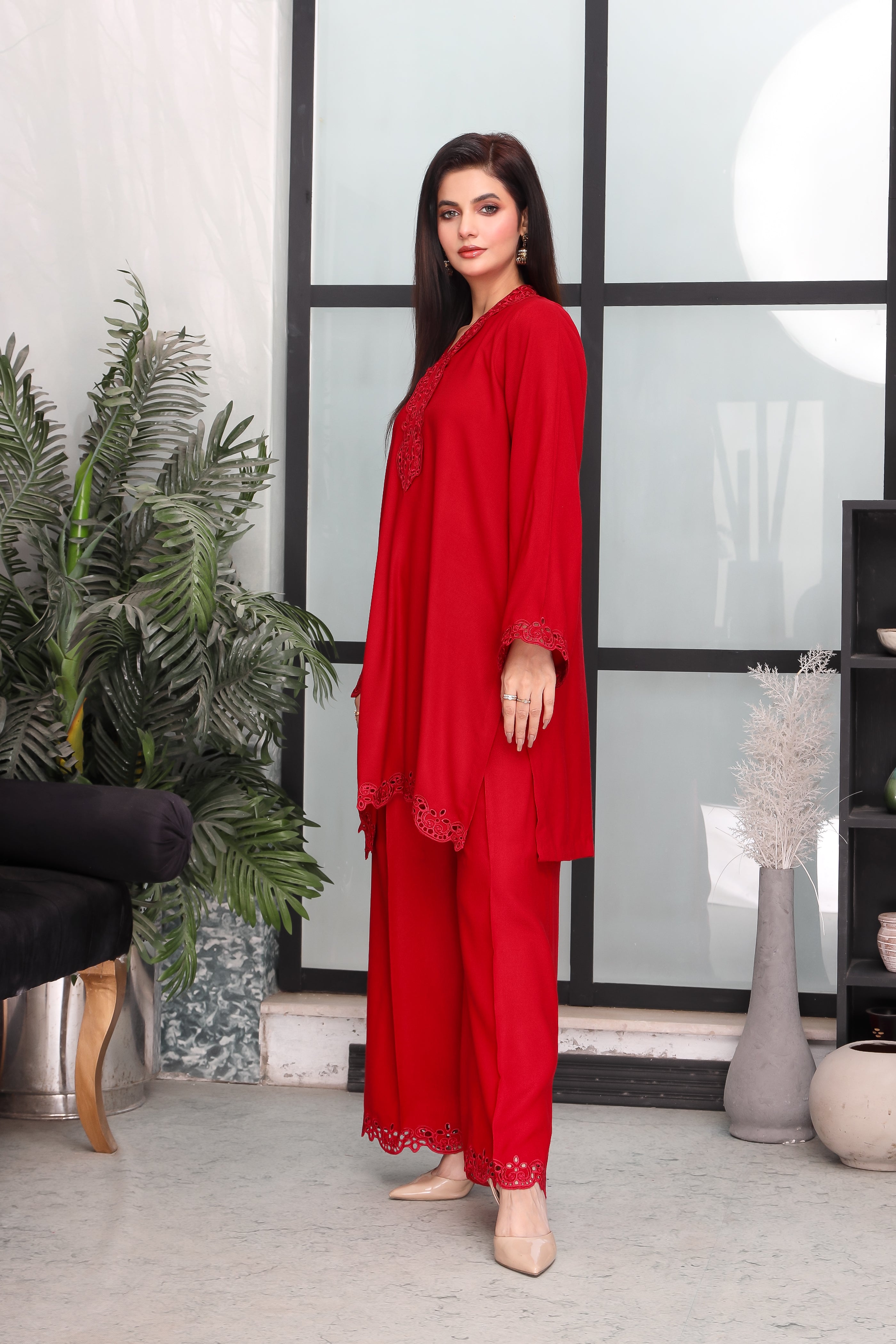 AF 711 | Sophisticated Red Wool Co-Ord Suit