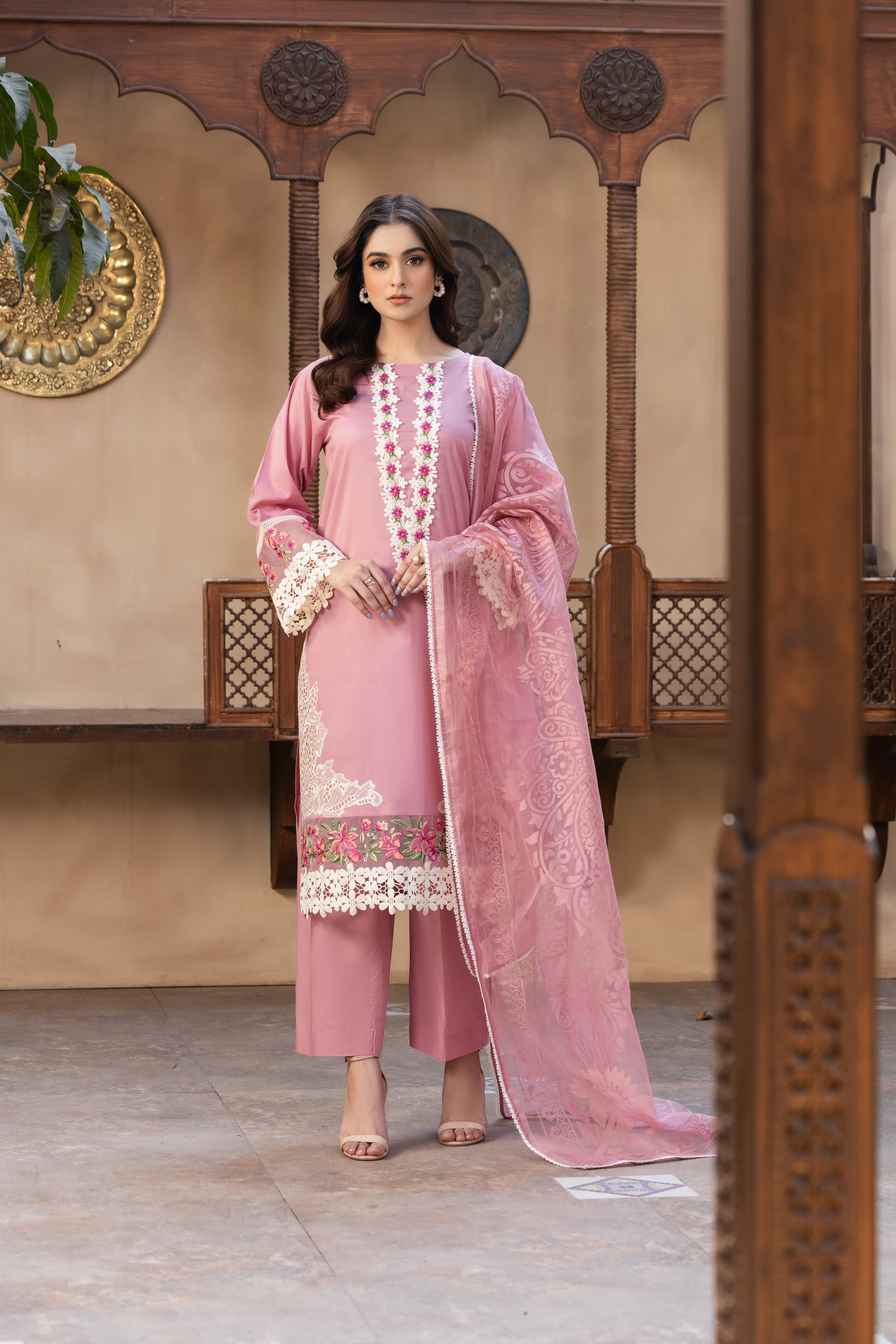🌸 Gull Kari - Elegant Pink Embroidered Lawn Suit 🌸
