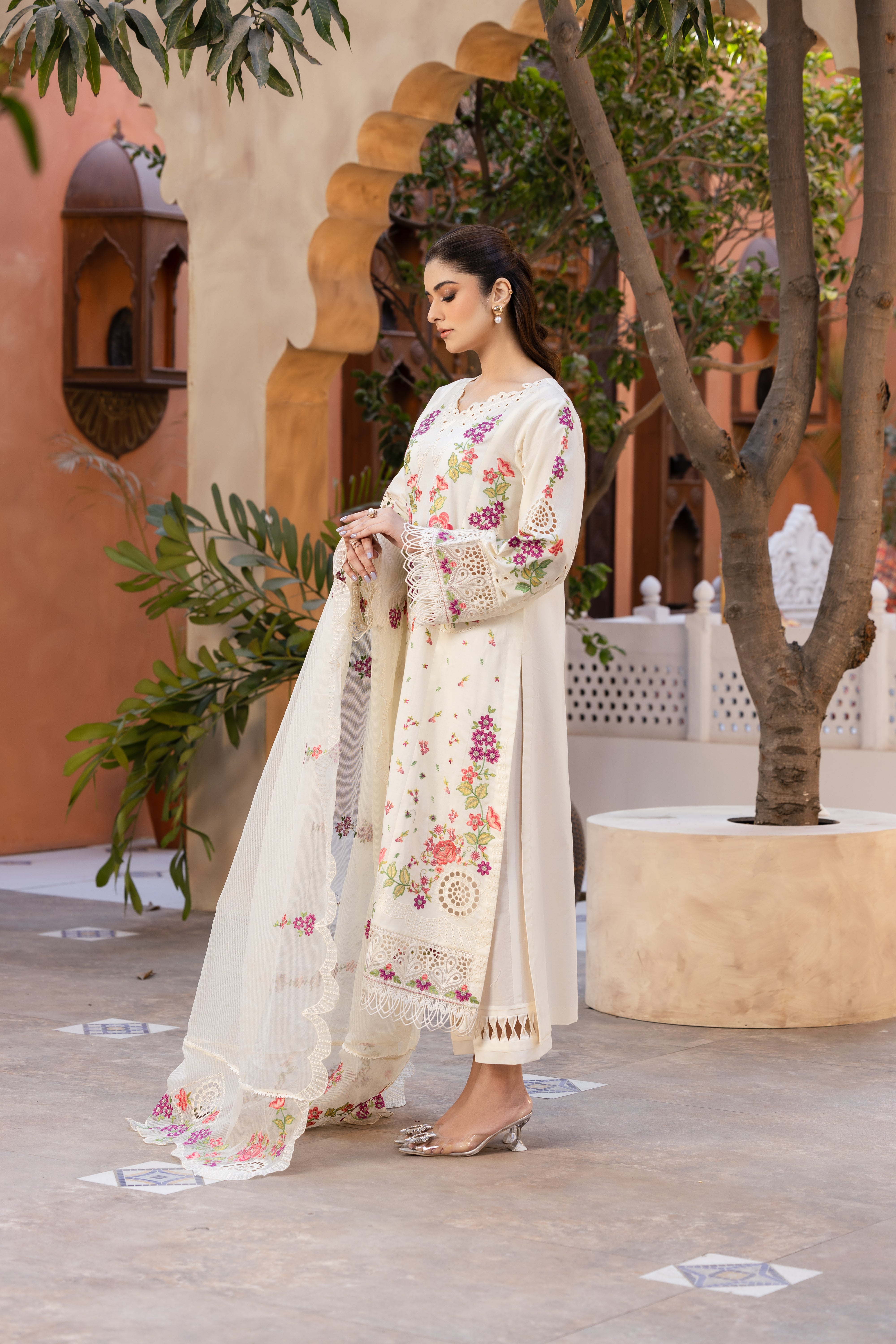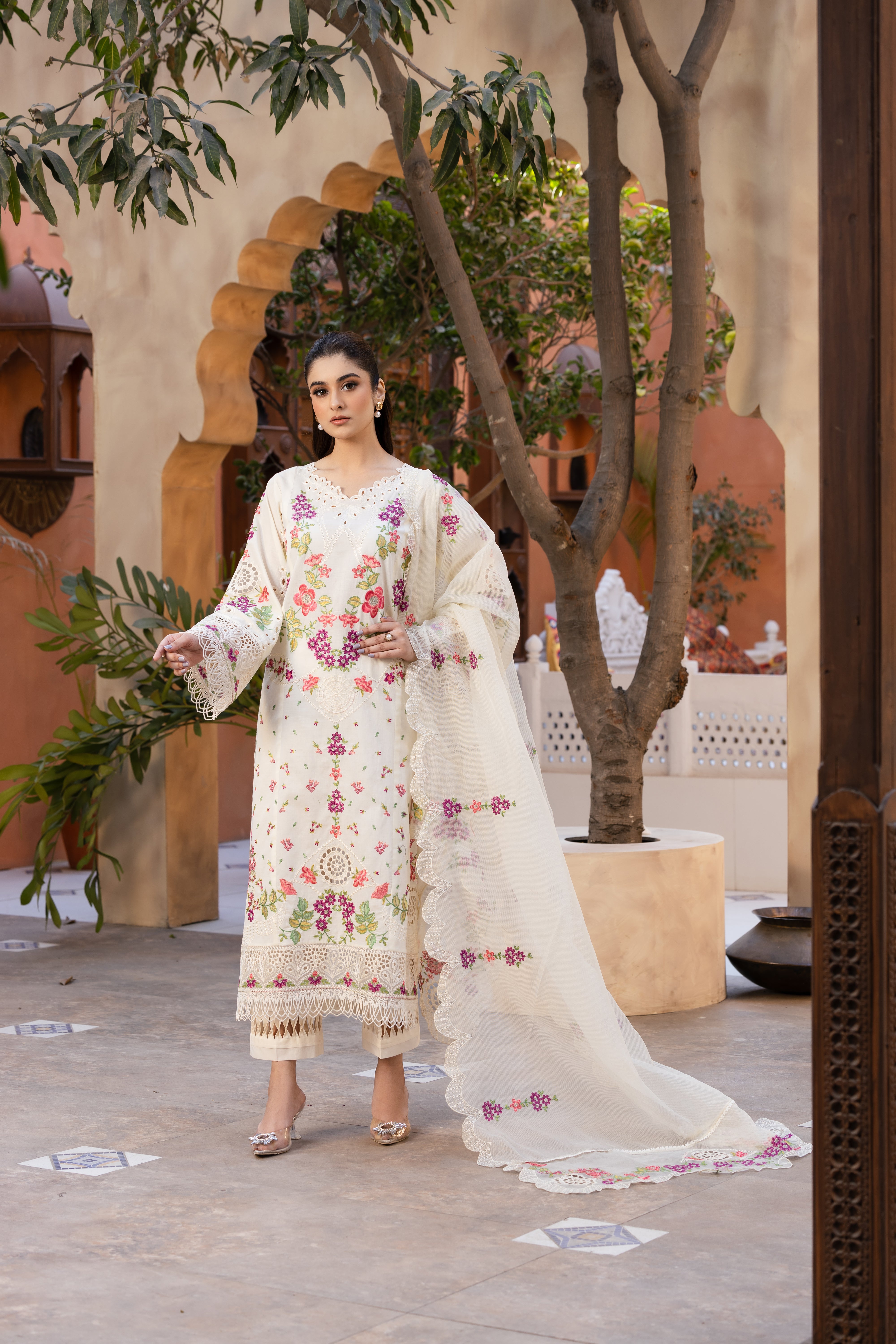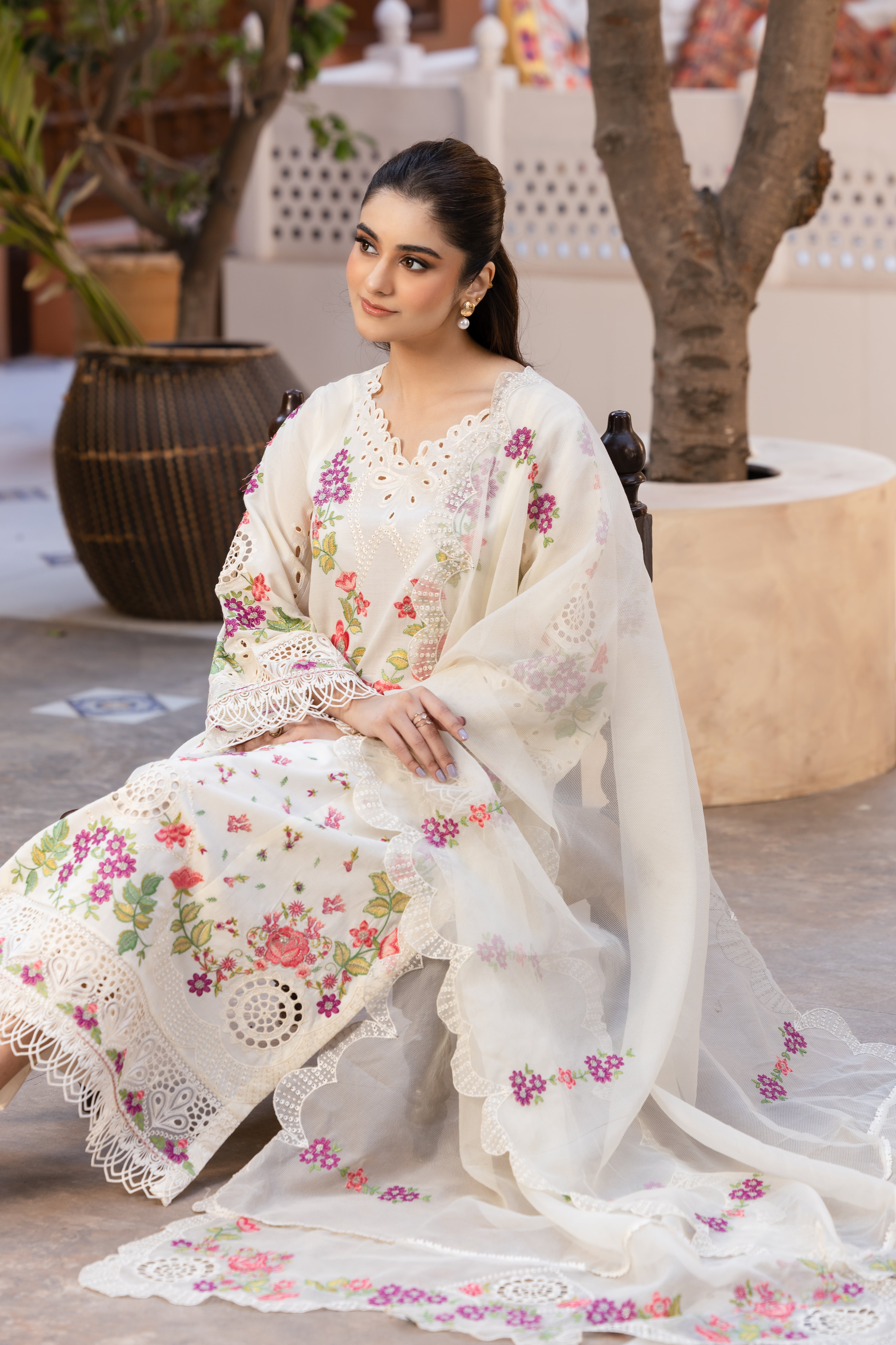 Embrace sophistication and effortless beauty with Ivory Blossom – the perfect ensemble for those who appreciate fine embroidery and delicate charm.