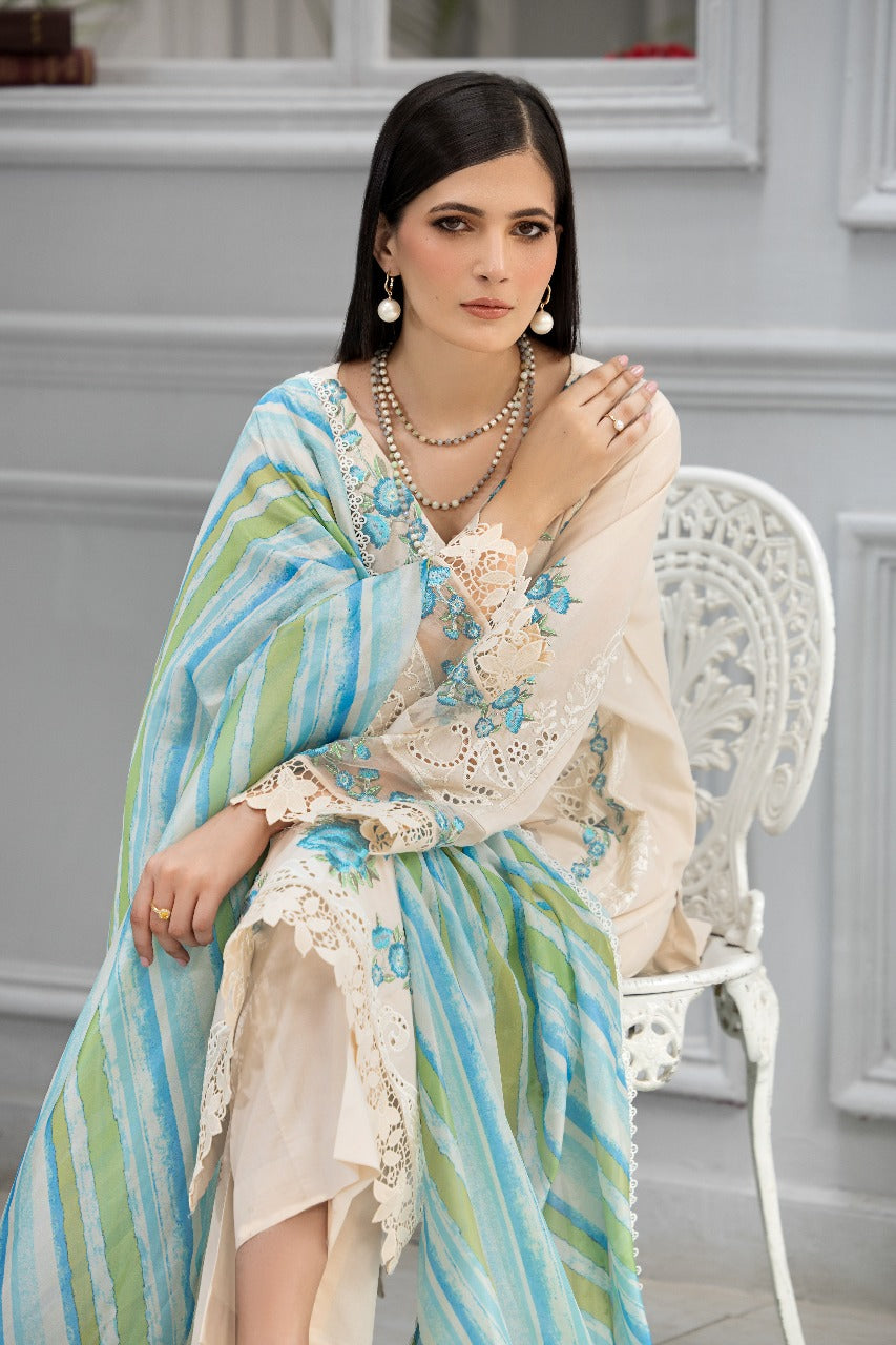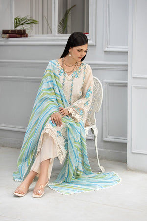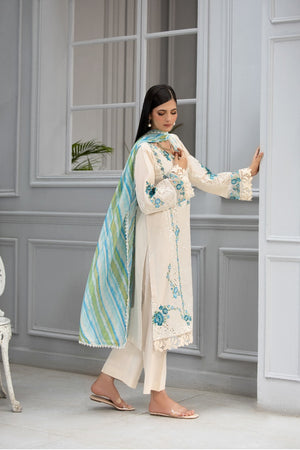Radiate elegance in صبح سخن, a graceful 3-piece suit in a soft ivory hue, designed to capture the calm and beauty of a serene morning.