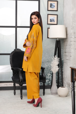 AF 704 | Peach Wool Embroidered Two-Piece Stitched Suit